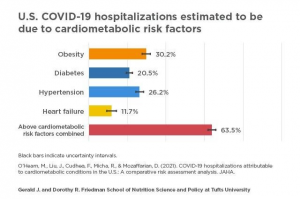 El estudio, publicado en el Journal of the American Heart Association (JAHA) y dirigido por investigadores de la Escuela de Ciencias y Políticas de Nutrición Gerald J. y Dorothy R. Friedman de la Universidad de Tufts, utilizó una simulación matemática para estimar el número y la proporción de hospitalizaciones nacionales por COVID-19 que podrían haberse evitado si los estadounidenses no hubieran padecido cuatro afecciones cardiometabólicas importantes.